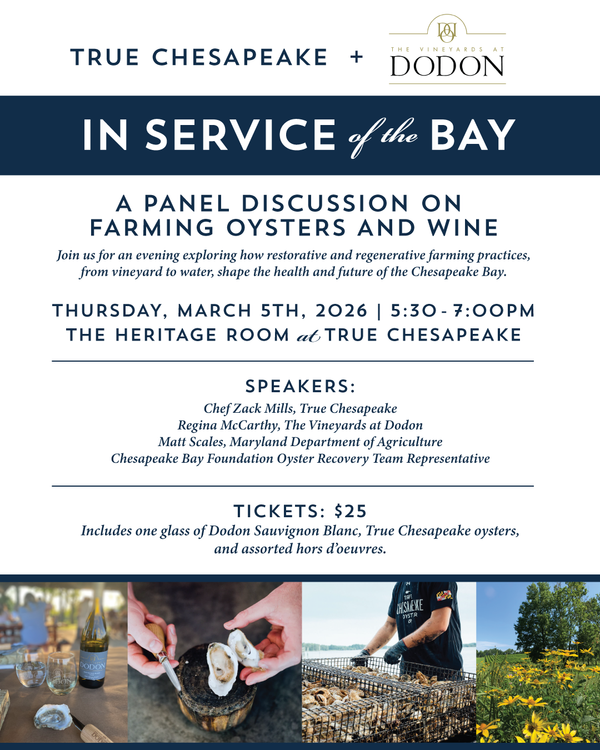 Join us for an evening exploring how restorative and regenerative farming practices, from vineyard to water, shape the health and future of the Chesapeake Bay.